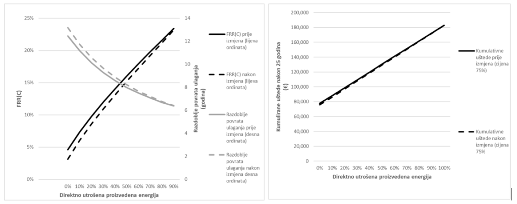 Komunalna društva na svojoj imovini mogu ugraditi postrojenja za proizvodnju obnovljive energije te proizvedenu energiju koristiti za potrebe svojih povezanih obračunskih mjernih mjesta. Takva mogućnost proizlazi iz odredbe članka 53. stavka 15. ZOIEVUK-a[4]. Naime, pružatelji javnih usluga mogu imati proizvodno postrojenje na jednom obračunskom mjernom mjestu, a energiju proizvedenu na tom obračunskom mjernom mjestu trošiti (dijeliti) s drugim obračunskim mjernim mjestima pod uvjetom da su obračunska mjerna mjesta povezana istim OIB-om i da su locirana u istoj županiji. Ukupna instalirana snaga u ovakvoj organizaciji može biti 6 MW. No, iako ova mogućnost predstavlja kontribuciju smanjenju troškova za energiju kao i smanjenju emisije stakleničkih plinova, nije u potpunosti korelirana s koncepcijom građanske energije iz razloga što građani i poduzeća sa tog područja nemaju pristupa viškovima proizvedene energije isporučene u mrežu.