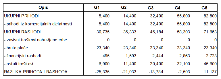 Iz tablice 5 (projekcija prihoda i rashoda) vidi se da zbog značajne svote interkalarne kamate i odgođenog početka prodaje dijeljene energije EZG bi poslovala sa značajnim manjkom prihoda nad rashodima u prvoj (G1) poslovnoj godini. U sljedećim godinama (G2-G5) poslovni prihodi (prihodi od predane dijeljene energije) su veći od rashoda. No, iz bilance stanja (tablica 6) može se primijetiti da unatoč većim prihodima nad rashodima EZG posluje s deficitom koji se smanjuje protekom vremena. Na deficit najviše utječu ciklusi količine proizvedene dijeljene energije tijekom poslovne godine. U projekciji novčanog toka (tablica 7) razvidno je da su priljevi iz poslovanja uglavnom uravnoteženi s odljevima iz financijskih aktivnosti pa zbog neujednačene dinamike proizvodnje energije tijekom poslovne godine koristi se okvirni kredit po poslovnom računu koji se postupno smanjuje.