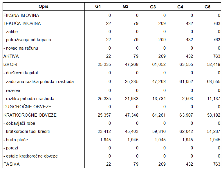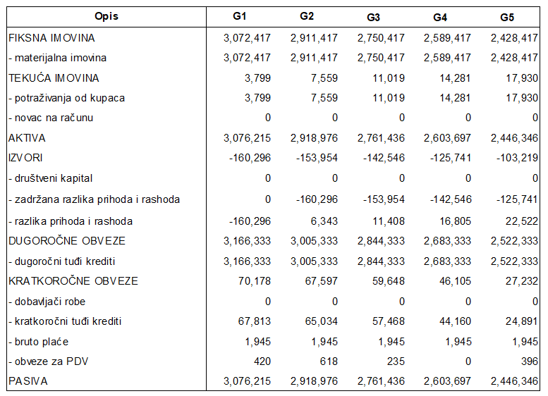 Tablica 6: Projekcija bilanci stanja za slučaj druge simulacijske opcije