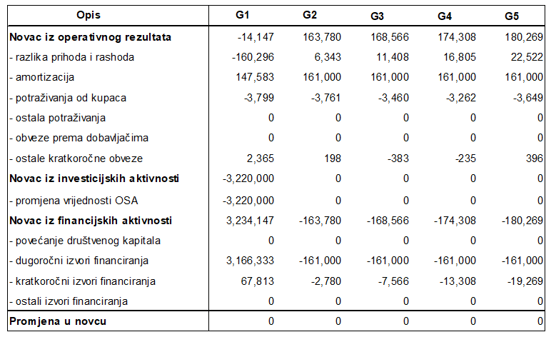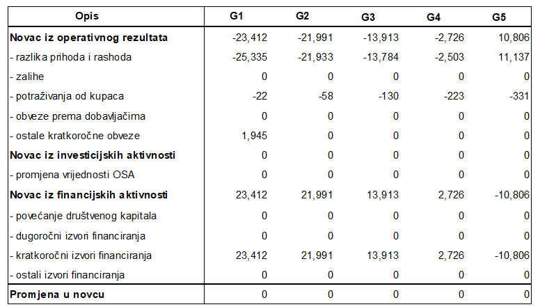 Tablica 7: Projekcija izvještaja o novčanim tokovima za slučaj druge simulacijske opcije
