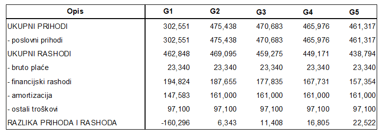 Očekivano poslovanje svakog poslovnog sustava, a EZG to svakako je, iskazuje se projekcijom financijskih izvještaja – računom prihoda i rashoda (dobiti i gubitka), bilancom stanja te projekcijom izvještaja o novčanim tokovima. Projekcije financijskih izvještaja priređene su za obje simulacijske opcije. Projekcija financijskih izvještaja za prvu simulacijsku opciju prikazana je u tablicama 2, 3 i 4, a projekcija financijskih izvještaja za drugu simulacijsku opciju prikazana je u tablicama 5, 6 i 7.